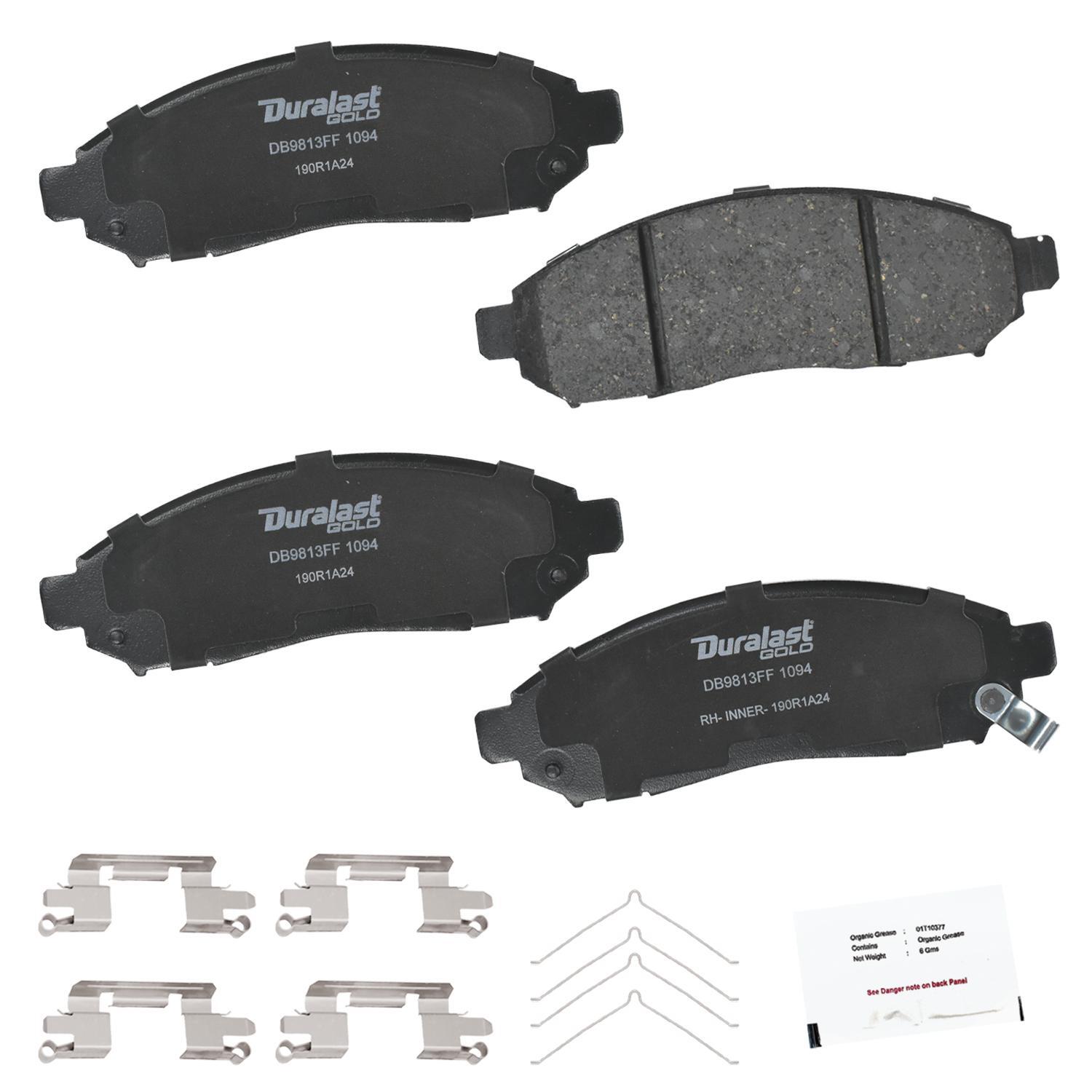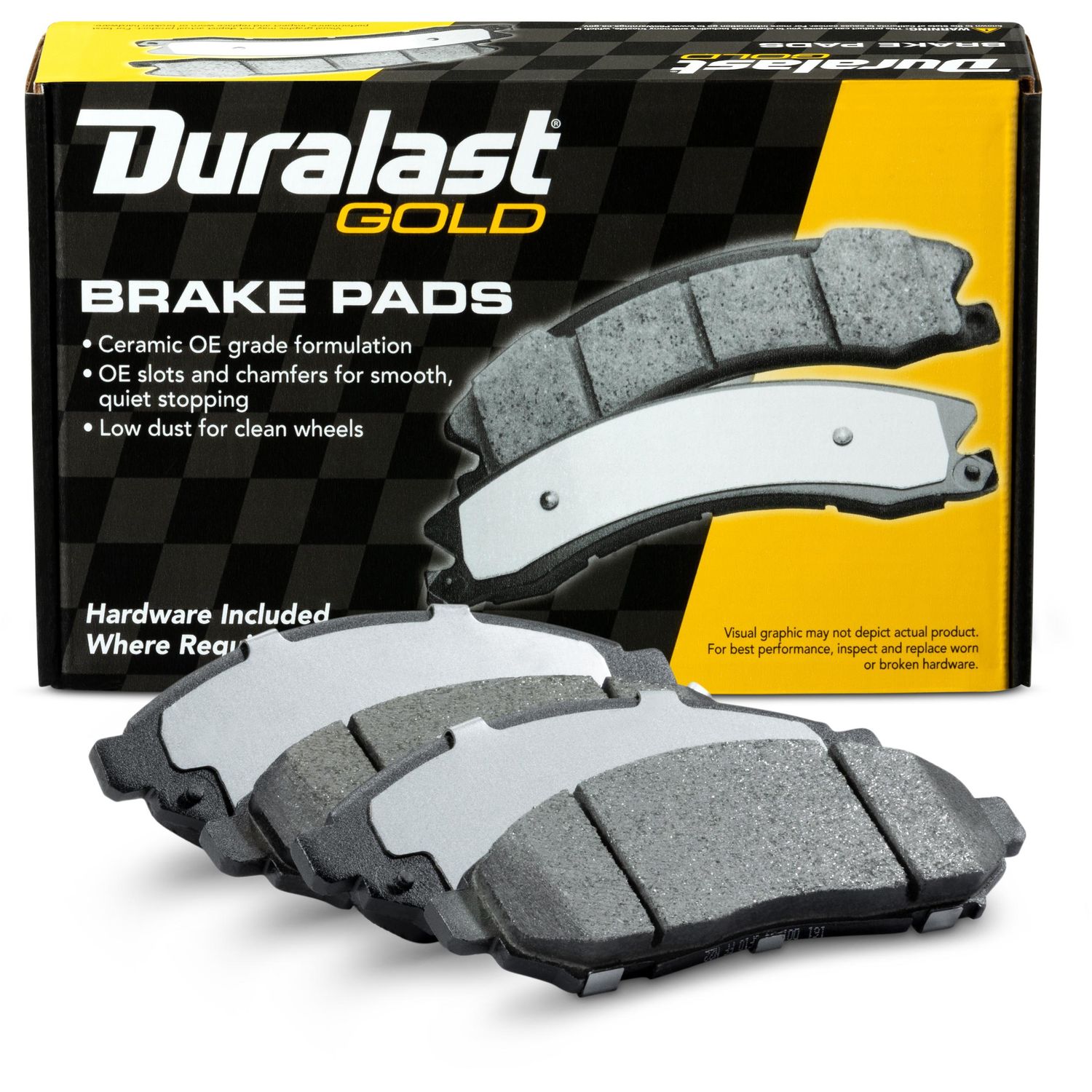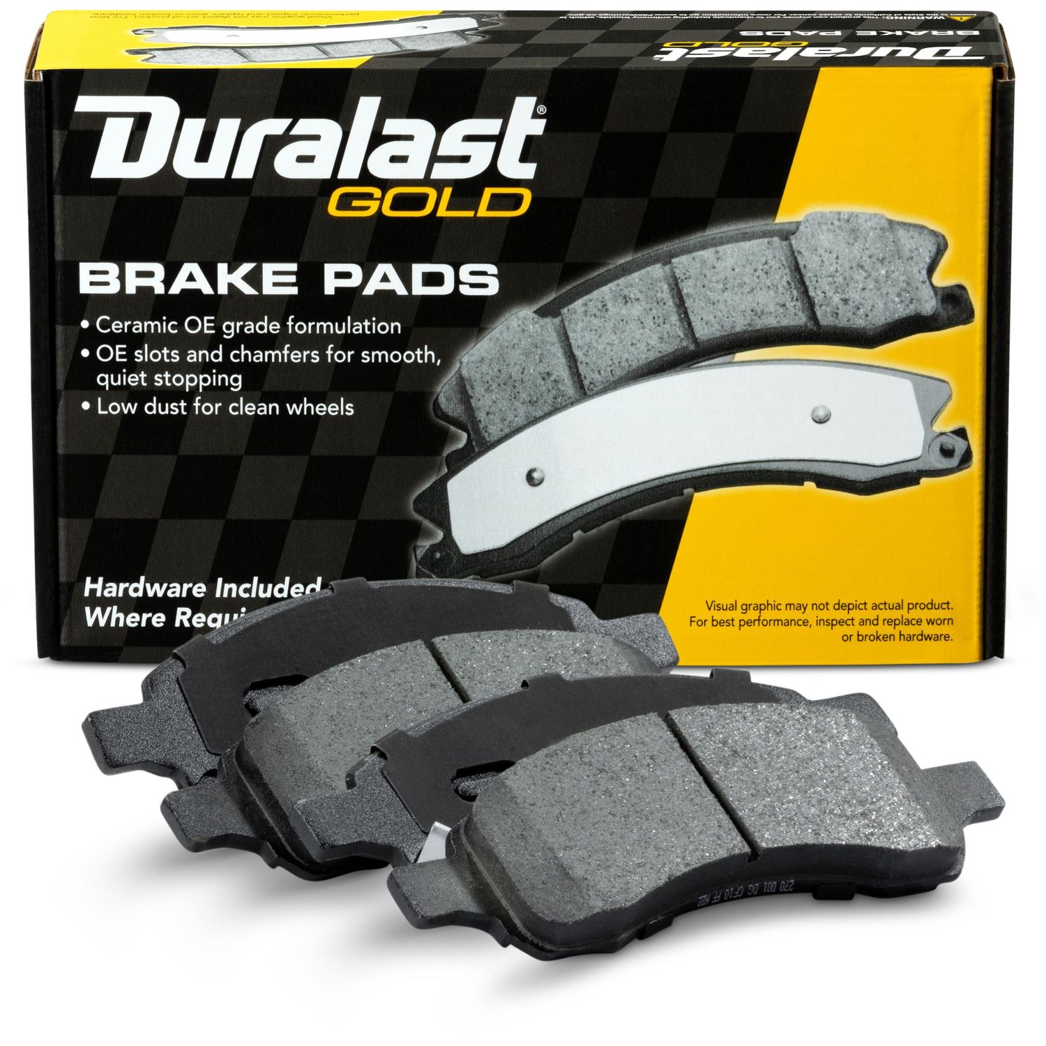 Duralast gold ceramic brake pads for a quieter ride and ultra low brake dust.