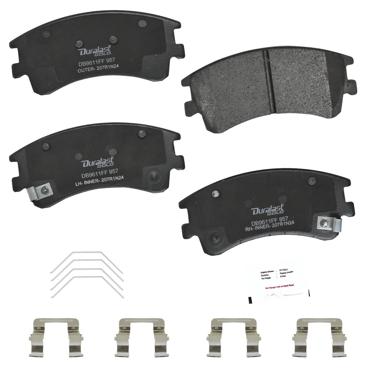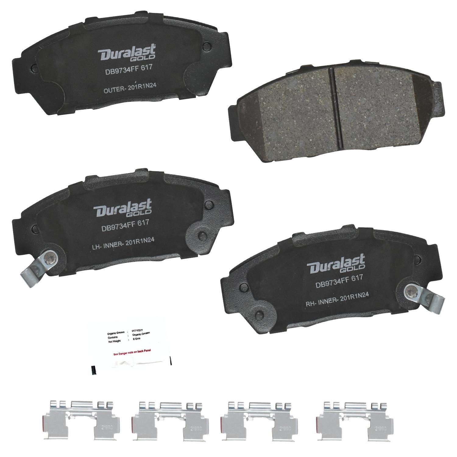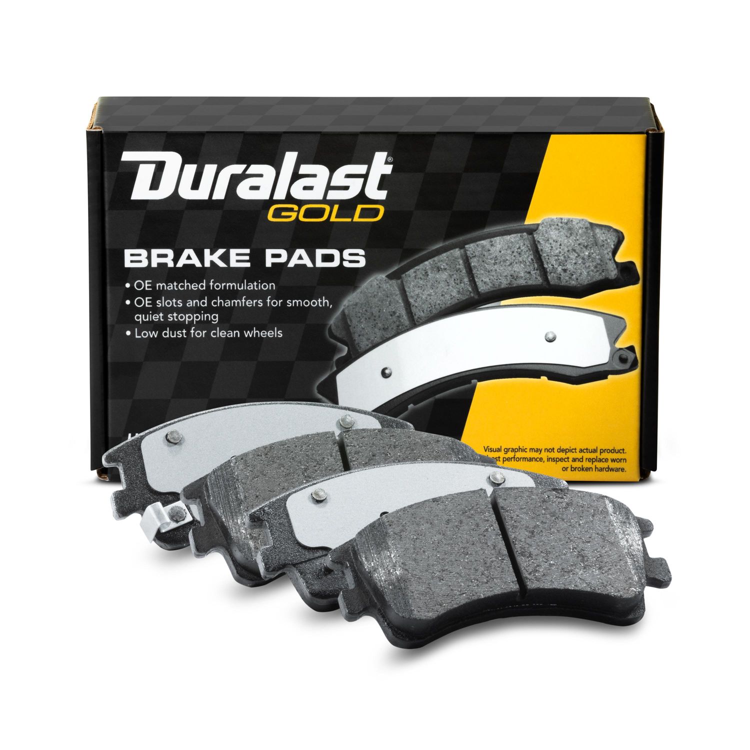 Duralast gold ceramic brake pads for a quieter ride and ultra low brake dust.
